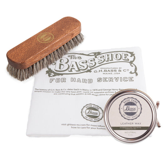 G.H. Bass Leather Wax Polish 50ml, Polishing Cloth & Buffing Brush Set