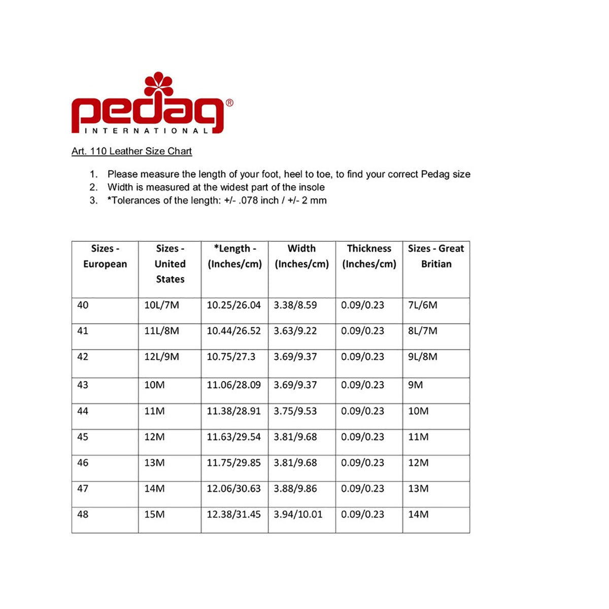 Pedag Leather Flat Insoles with Anti-Odour Activated Charcoal