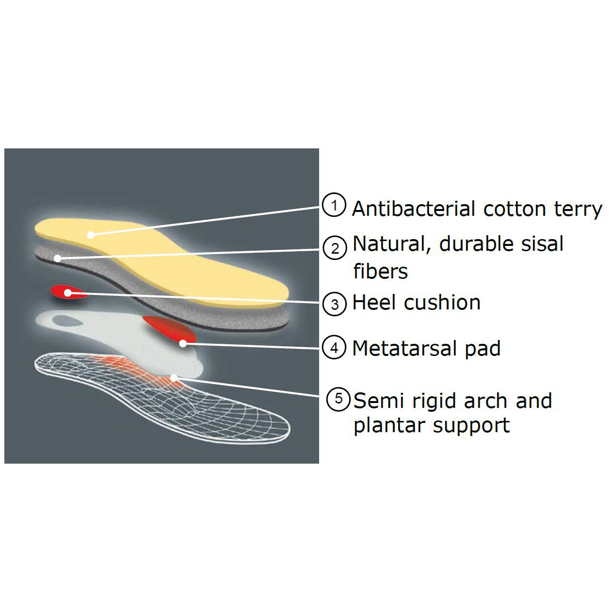 The Pedag Viva Summer Insoles feature a lightweight, moisture-wicking design with natural fibres for a fresh and odour-free experience. Their ergonomic structure provides arch support, making them ideal for all-day wear in summer conditions.